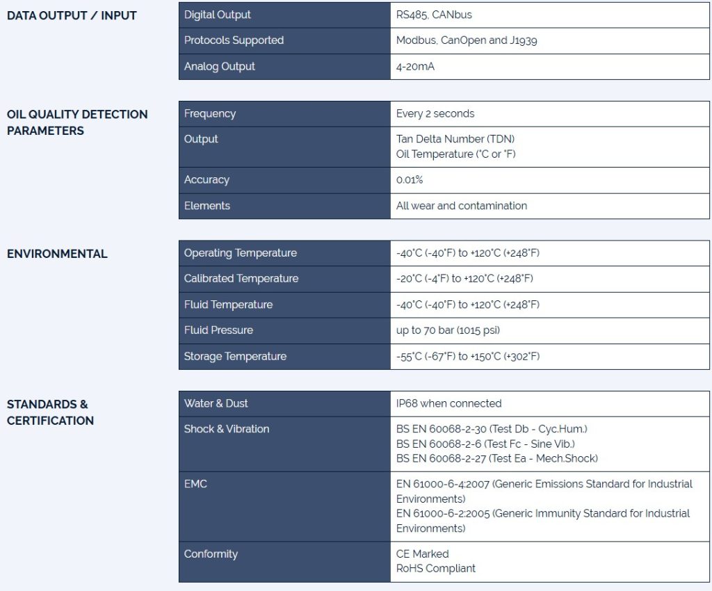 Tüm endüstriyel ve ticari uygulamalar için entegre akıllı ekipman bakım optimizasyonu analitiğine sahip gerçek zamanlı yağ durumu analiz sensörü. Zone2 için Ex versiyonu da mevcuttur.